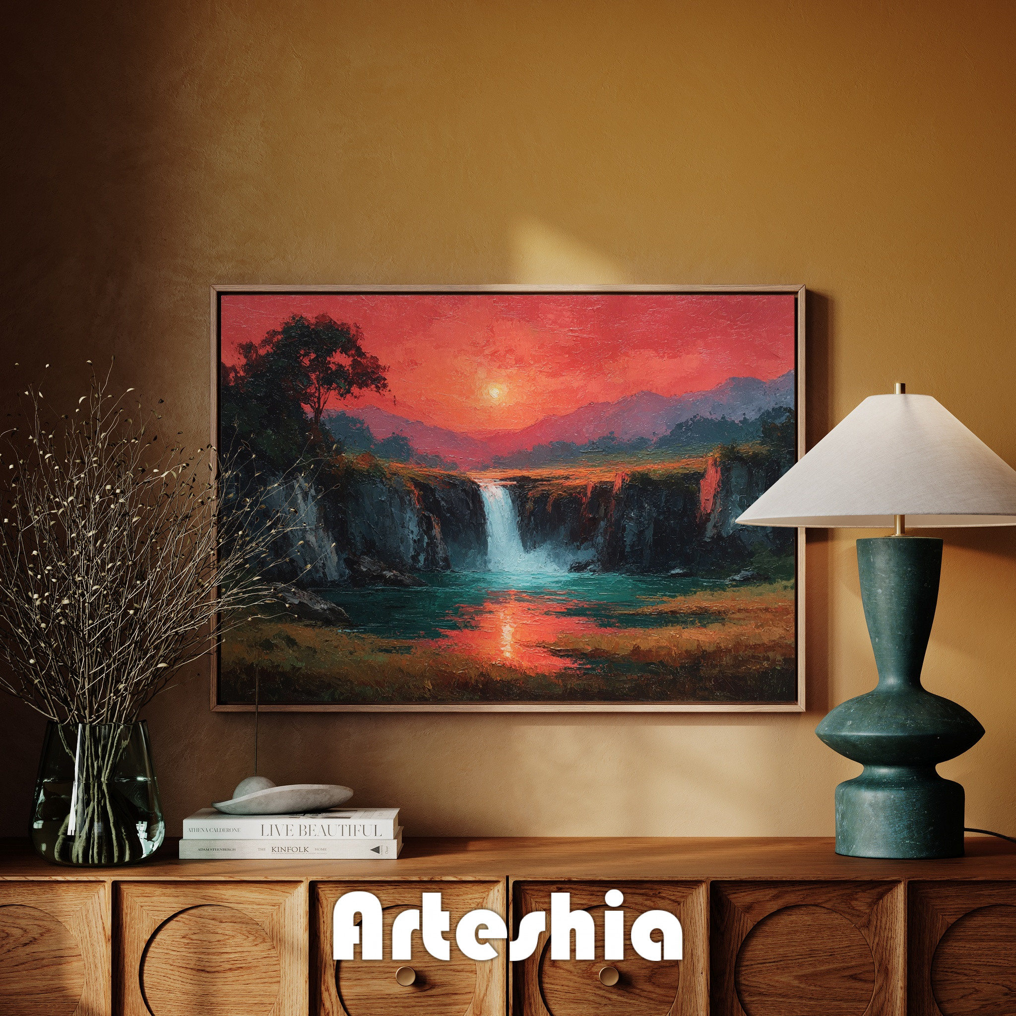 Bask in the warm glow of this vintage waterfall oil painting, where golden light cascades through tranquil waters and lush landscapes. The painterly brushwork and aged texture bring an antique charm that enhances both traditional and modern interiors. Ideal for living rooms, art galleries, or serene spaces, this oil-on-canvas piece embodies natural elegance and harmony. Each detail reflects the artistās devotion to timeless landscape art, making it a perfect centerpiece for nature enthusiasts and art collectors alike.